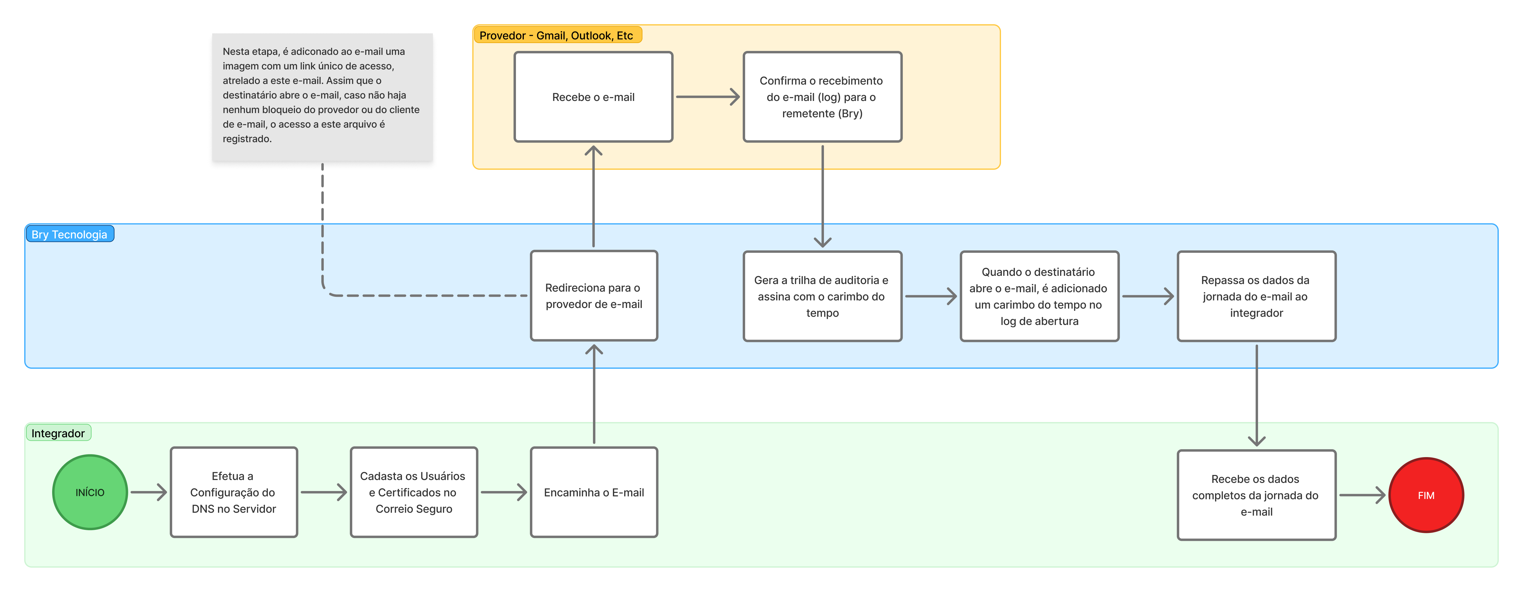 Com a API Bry Notifica, é possível assegurar a autenticidade do envio do e-mail para o destinatário, isto é, você garante que o e-mail foi enviado pelo remetente correto. Além disso, quando o destinatário abrir o e-mail, esta ação será informada ao sistema do remetente.